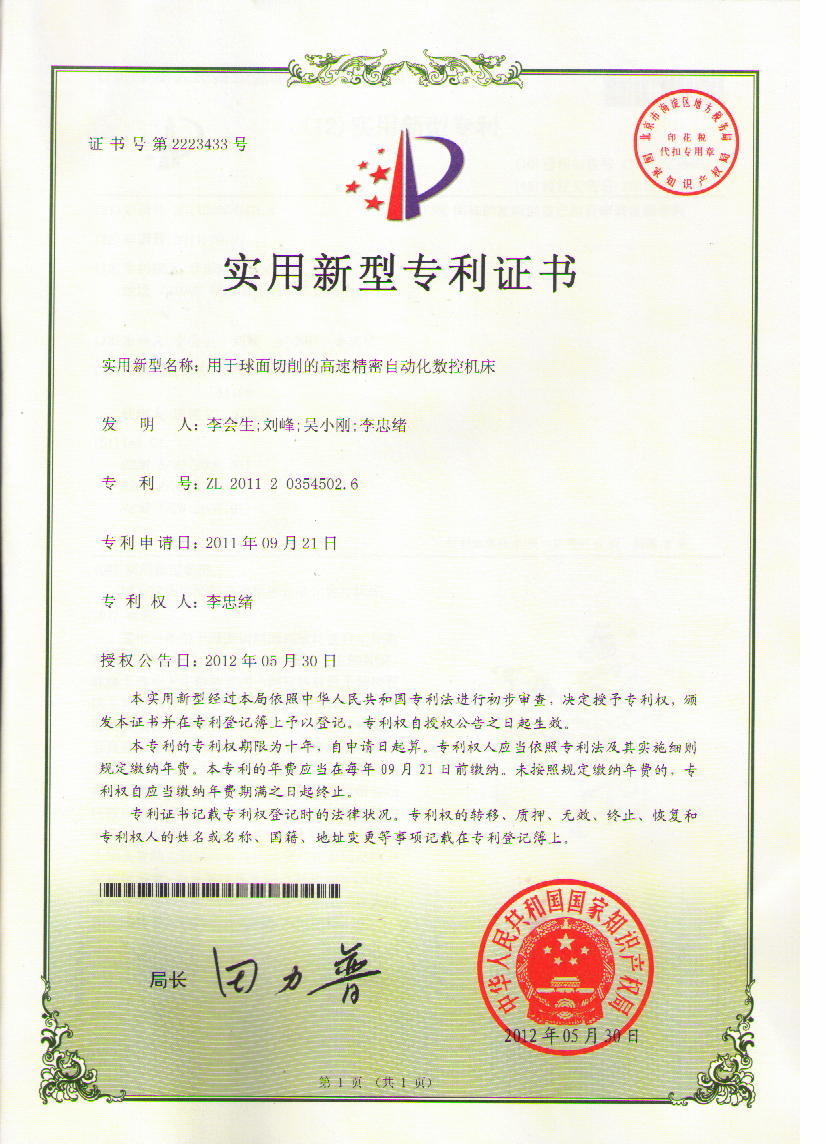 用于球面切削的高速精密自動化數控車床通過授權